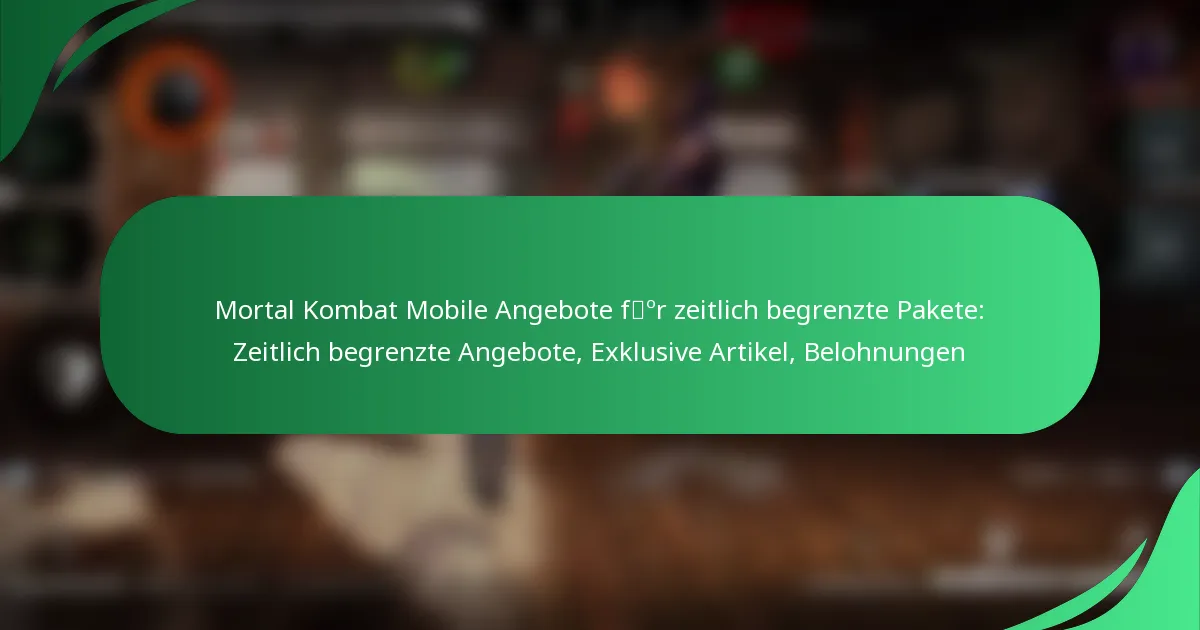 Mortal Kombat Mobile bietet derzeit zeitlich begrenzte Paketangebote an, die es den Spielern ermöglichen, ihr Spielerlebnis mit Charakter-Upgrades, exklusiven Belohnungen und wertvollen Gegenständen z...